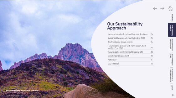 Tawuniya sustainability (ESG) report design and copywriting services.