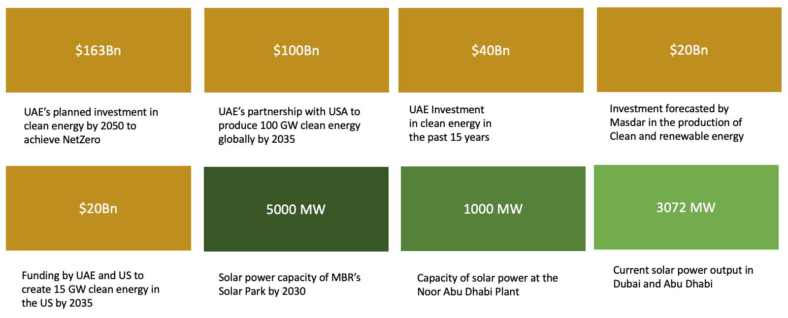 Gulf Cooperation Council (GCC) countries are already making significant strides towards sustainability. The United Arab Emirates (UAE) is leading the charge with a $40 billion investment in clean energy and plans to invest an additional $164 billion in the future. The UAE is particularly focused on hydrogen fuel, which is known for its minimal emissions.